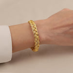 Zarif tasarımı ve parlak sarı altın rengi ile öne çıkan Kalze 14 Ayar Altın Bileklik, 17,13 gram ağırlığıyla bileğinizde şıklığı ve zarafeti bir arada sunar. Günlük kullanım veya özel davetler için ideal bir tercih olan bu bileklik, Nur Exclusive kalitesi ve Nur Kuyumcu güvencesi ile uzun yıllar güvenle kullanılabilir.