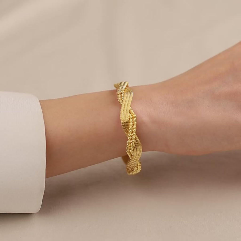 Zarif ve şık tasarımıyla öne çıkan Kalze Dorikalı 14 Ayar Altın Bileklik, 16,28 gram ağırlığı ve parlak sarı altın rengi ile bileğinizde değerli bir duruş sunar. Günlük kullanımda veya özel davetlerde stilinizi ön plana çıkaran bu bileklik, Nur Exclusive kalitesi ve Nur Kuyumcu güvencesi ile uzun yıllar güvenle tercih edilebilir.