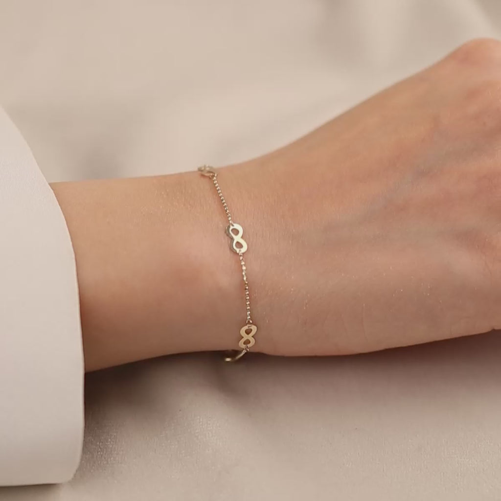 Zarafeti ve anlamlı tasarımı bir araya getiren şık bir aksesuar arayanlar için ideal bir seçimdir. 1.20 gram ağırlığındaki bu zarif model, sonsuzluk sembolünün taşıdığı sevgi ve bağlılık mesajını altının ışıltısıyla bütünleştirir.