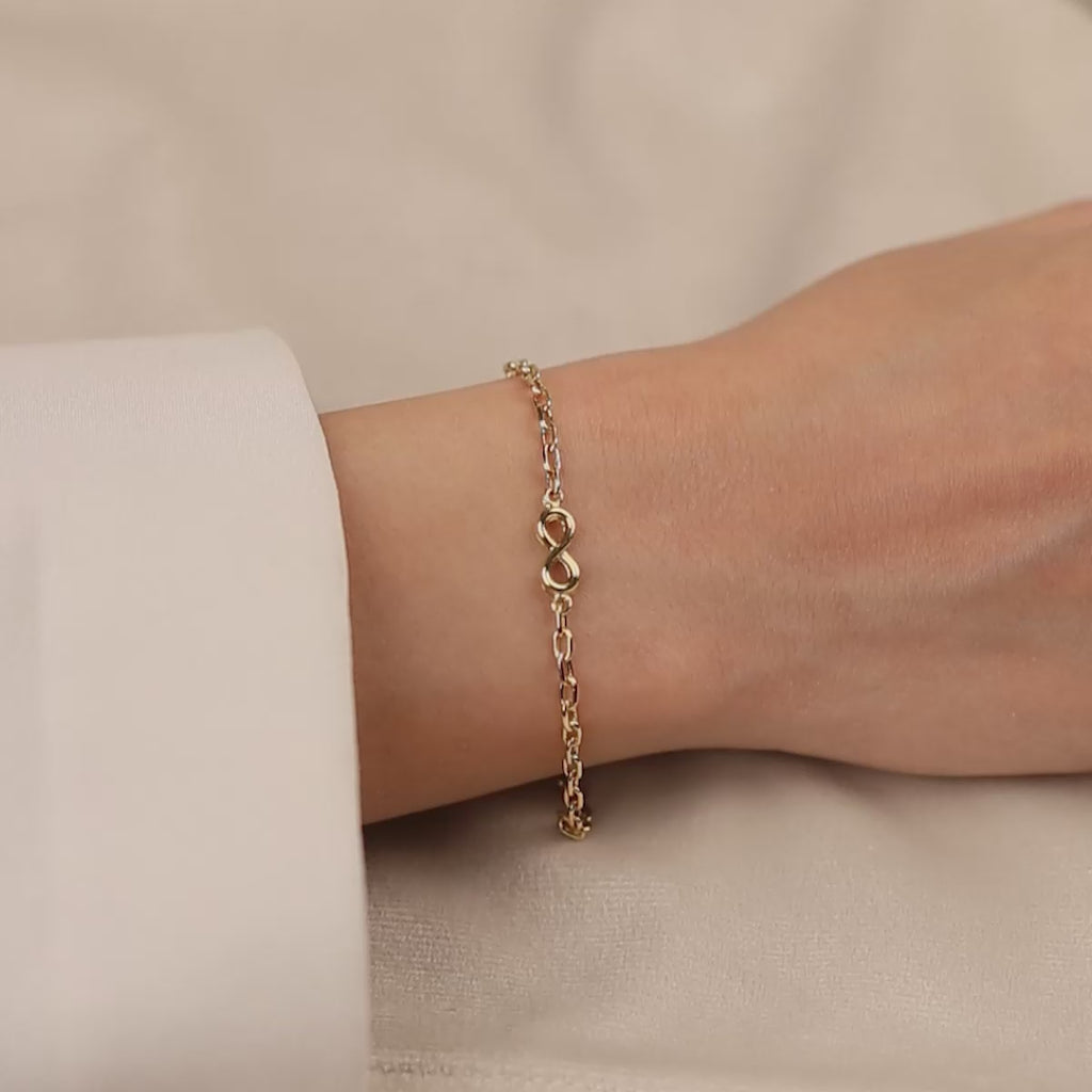 Sonsuzluk sembolü, sürekli ve kalıcı bağlılığı temsil eder. Taşlı detaylarıyla modern ve şık bir görünüm sunan bu bileklik, hem kendiniz için hem de sevdiklerinize anlamlı bir hediye seçeneği olarak öne çıkar.