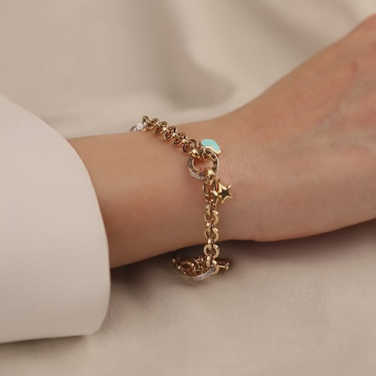 Cetaş Eterna bileklik, 14 ayar sarı altından üretilmiş zarif ve gösterişli bir tasarıma sahiptir. 9,62 gramlık ağırlığıyla hem günlük kullanımda hem de özel günlerde şıklığı tamamlayan ideal bir aksesuardır. Cetaş kalitesiyle uzun ömürlü ve dayanıklı bir bileklik deneyimi sunar.