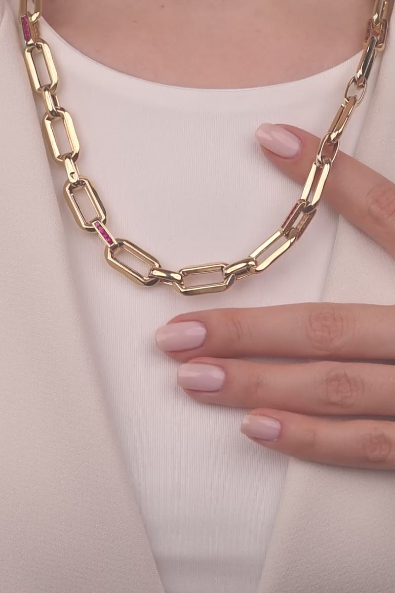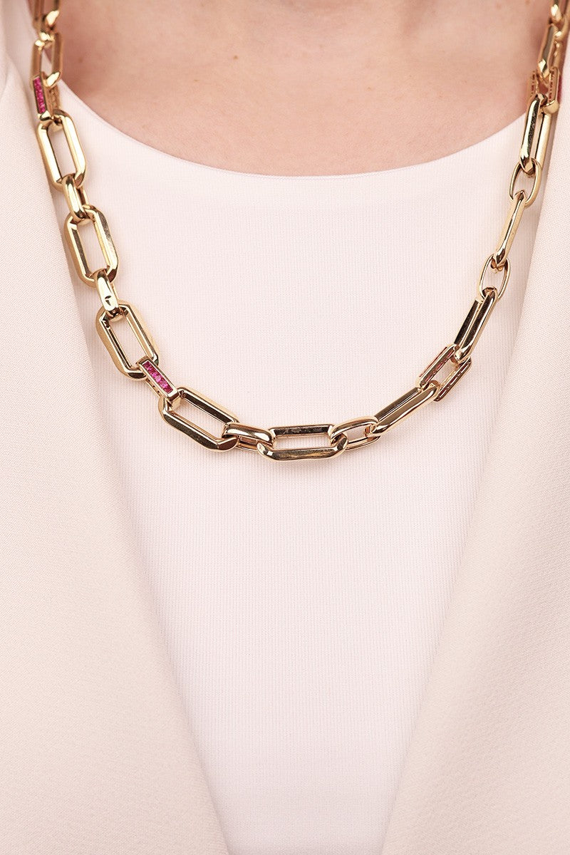• Model: Kalın Zincir Magenta Taş Detaylı Kolye