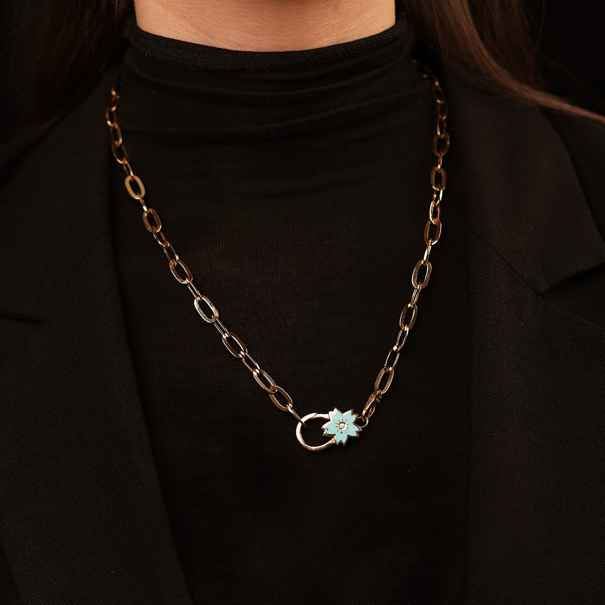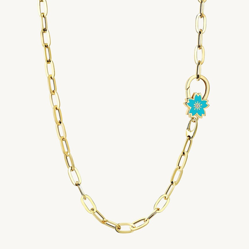 Cetaş Mavi Mineli Çiçek Detaylı 14 Ayar Altın Kolye