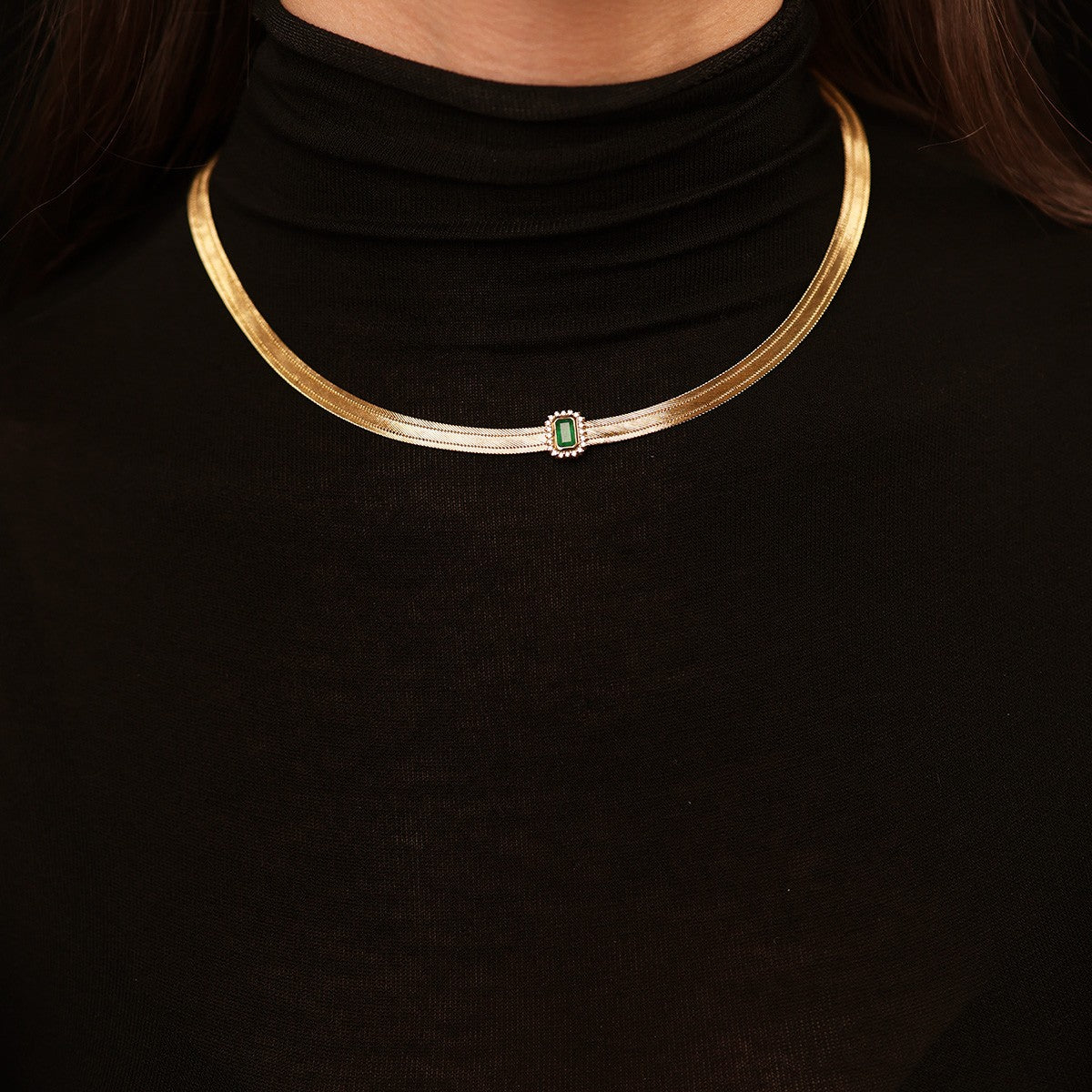 Elizi Pırlanta Zümrütlü 3 Sıra Trabzon Hasır 14 Ayar Altın Kolye