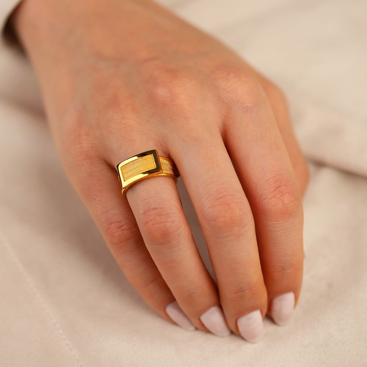 Elizi Düz Toka 14 Ayar Altın Yüzük, modern ve minimalist tasarımıyla her tarza uyum sağlar. Nur Kuyumculuk güvencesiyle sahip olacağınız bu yüzük, sevdiklerinize unutulmaz bir hediye seçeneği de olabilir.