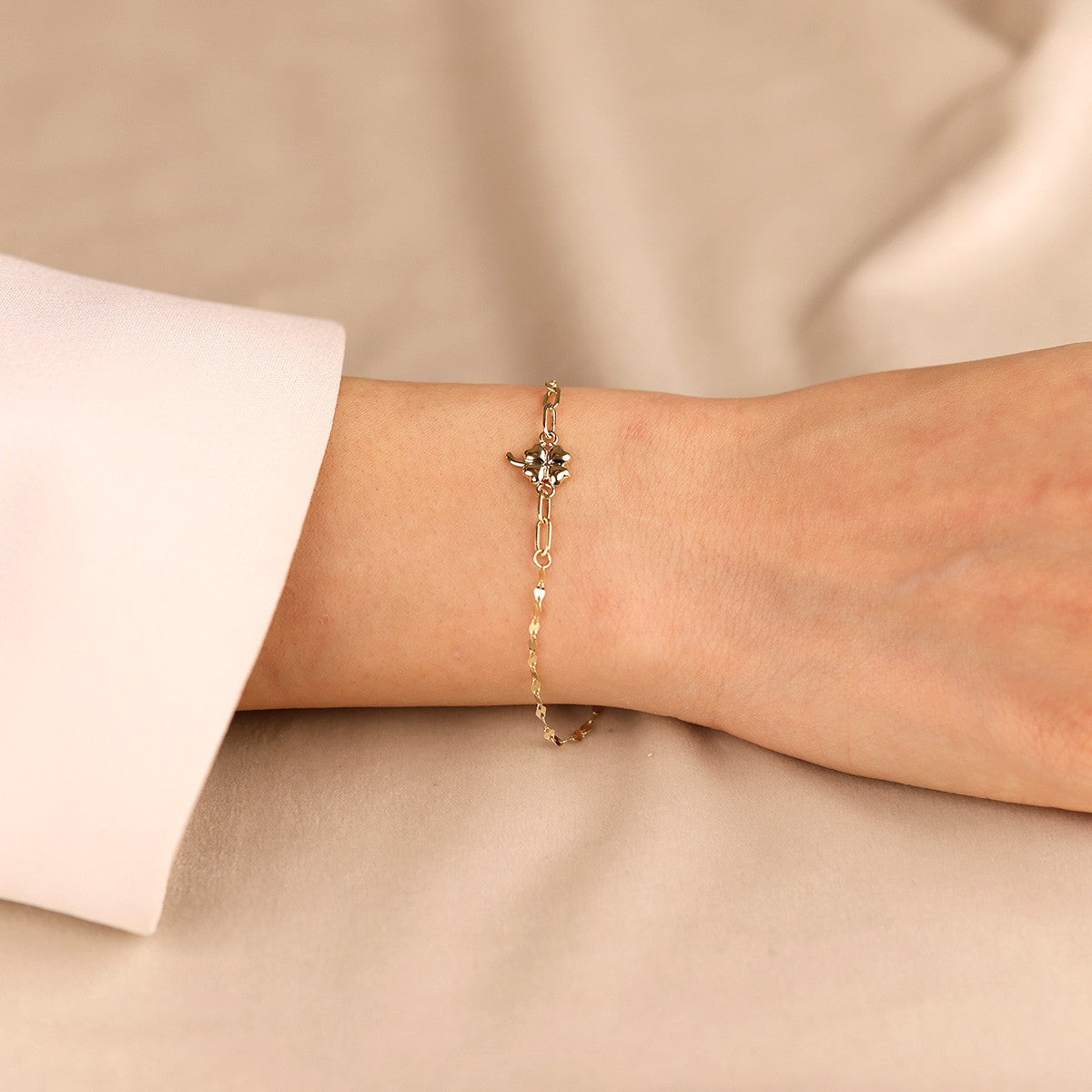Yonca Figürlü Hediyelik 14 Ayar Altın Bileklik