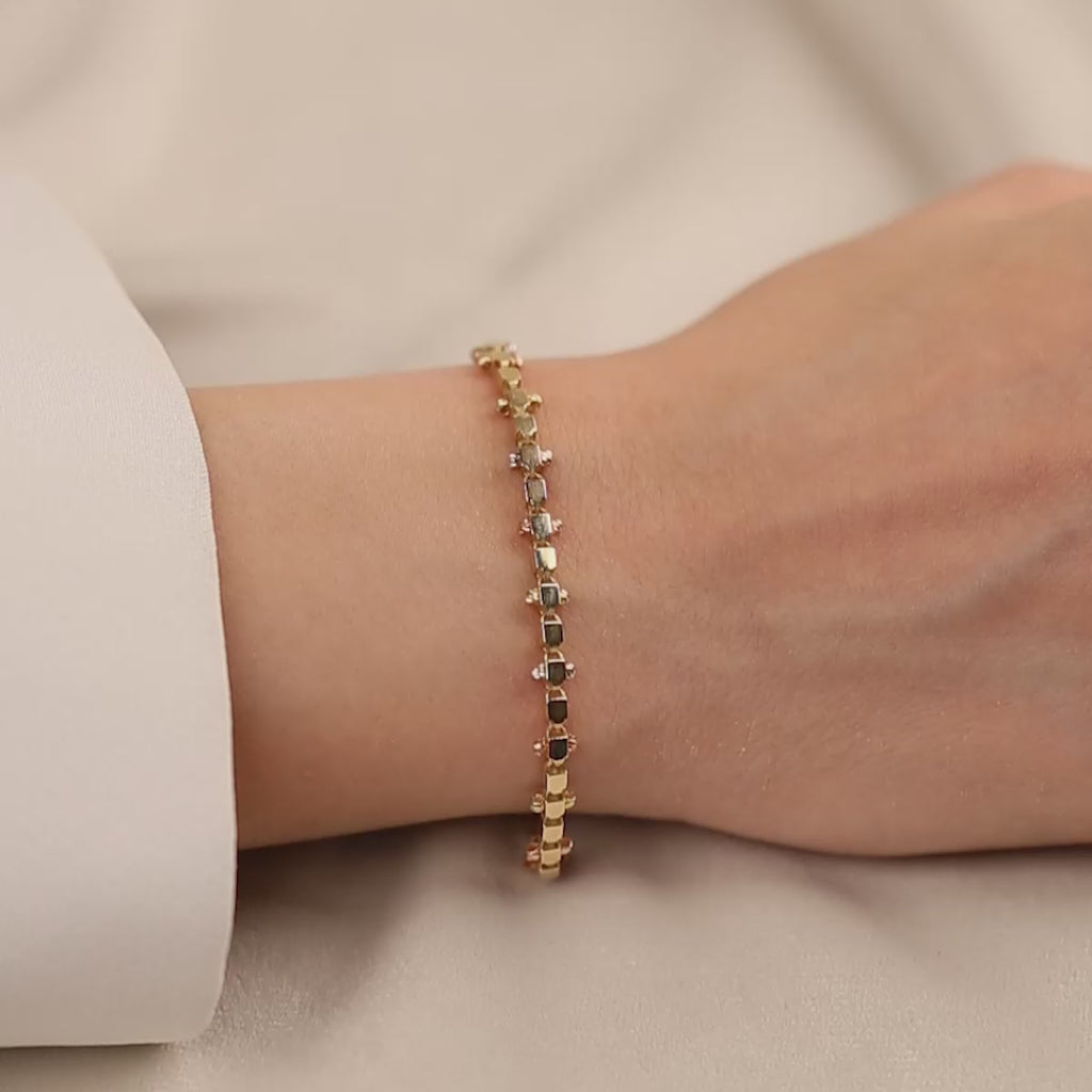 Zarafetin ve şıklığın vazgeçilmez tamamlayıcısı olan dorika toplu 14 ayar altın bileklik, günlük kullanımda da özel günlerde de stilinize zarif bir ışıltı katar. 4,59 gram ağırlığındaki bu şık bileklik, Nur Exclusive ustalığıyla işlenmiş olup hem dayanıklı hem de estetik bir tasarıma sahiptir. Klasik dorika topları modern bir yorumla buluşturan bu model, her yaşa ve her tarza kolayca uyum sağlar.
