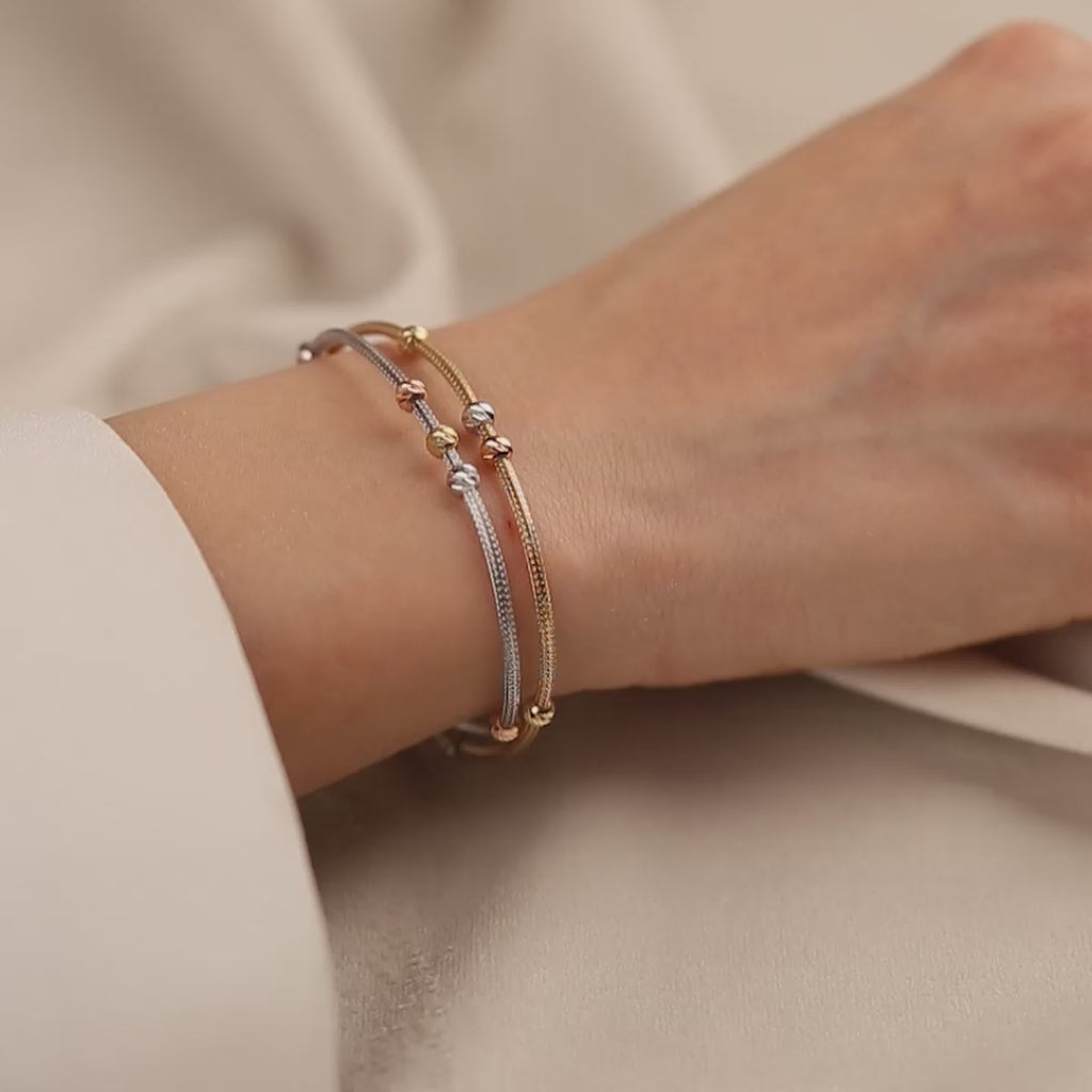 6,75 gram ağırlığındaki bu 14 ayar dorikalı bileklik, sarı ve beyaz altının uyumunu bir araya getiren zarif ve göz alıcı bir tasarıma sahiptir. Hareketli dorikaların ışığı farklı açılardan yansıtması sayesinde bilekte son derece şık ve dikkat çekici bir duruş sergiler. Hem günlük kullanımda hem de özel günlerde rahatça tercih edilebilecek bu model, Nur Exclusive kalitesiyle uzun yıllar boyunca ilk günkü ihtişamını koruyacak şekilde tasarlanmıştır. Zarafet ve ışıltıyı bir arada arayanlar için ideal bir altın bileklik seçeneğidir.