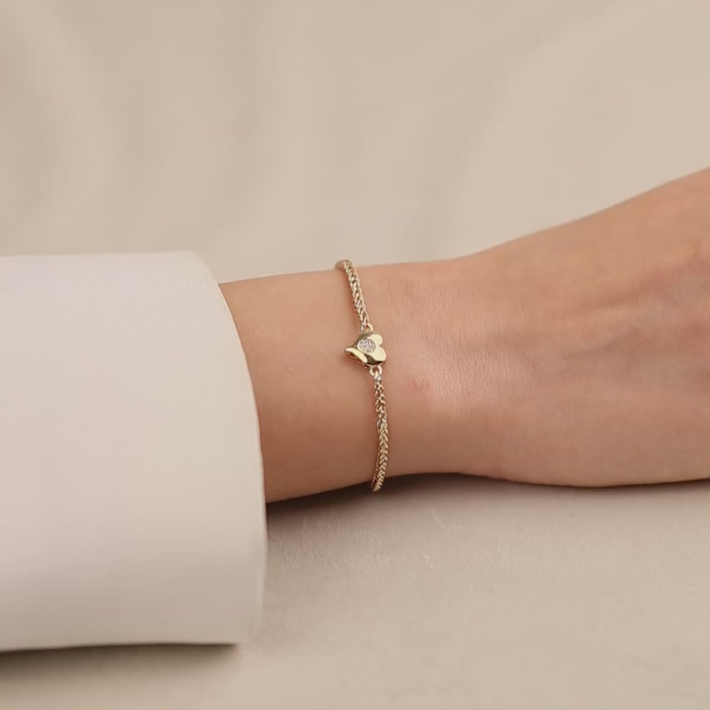 Kalp Detaylı 14 Ayar Altın Bileklik