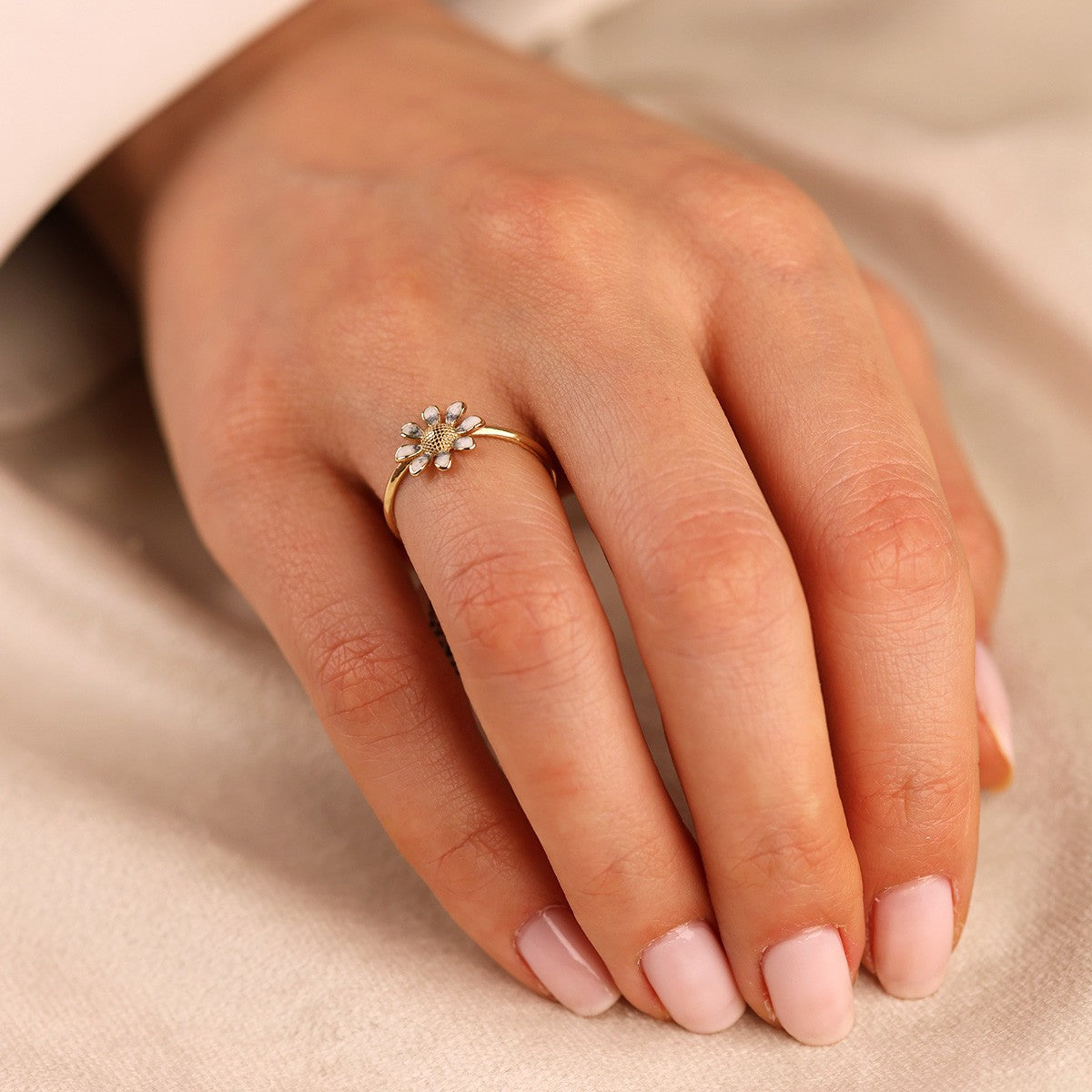 ÇİÇEK MOTİFLİ 14 AYAR ALTIN YÜZÜK – SEVGİLİYE ŞIK HEDİYE