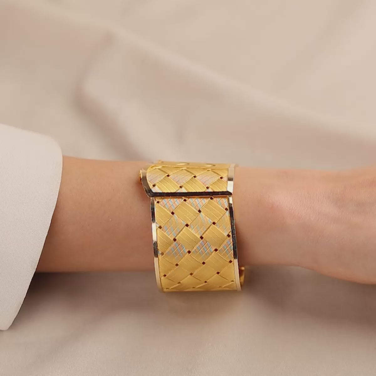 Zarif ve özel tasarımıyla öne çıkan Trabzon Örgü 14 Ayar Altın Kelepçe, 33,08 gram ağırlığı ve sarı altın rengi ile bileğinizde modern ve göz alıcı bir duruş sağlar. Günlük kullanımda veya özel davetlerde stilinizi ön plana çıkaran bu kelepçe, Nur Exclusive kalitesi ve Nur Kuyumculuk güvencesi ile güvenle tercih edilebilir.