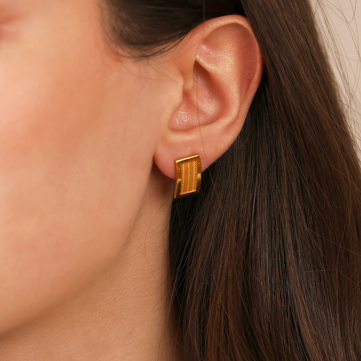 Nur Kuyumculuk güvencesiyle, geleneksel Trabzon Hasır motifini modern tasarımla buluşturan 14 ayar altın küpe.