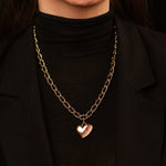 Cetaş Eterna Turuncu Taş Detaylı 14 Ayar Altın Kalp Kolye